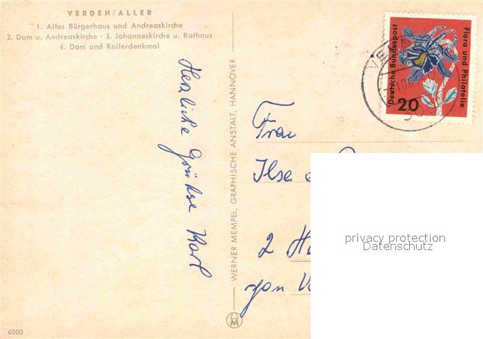 72724242 alte Postkarte Verden Aller Altes Buergerhaus Kirche Dom Rathaus Reiterdenkmal postalisch gelaufen Erhaltung siehe scans [FriedD77] KatCode: 11110003361012