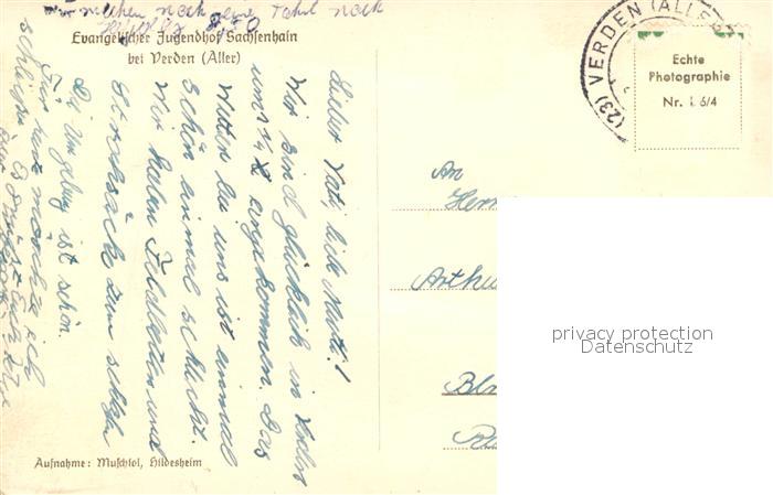 43495389 alte Postkarte Verden Aller Ev Jugendhof Sachsenhain postalisch gelaufen Erhaltung siehe scans [WerneD78] KatCode: 11110003361012