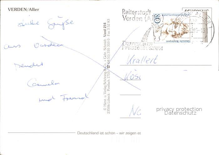 72367031 alte Postkarte Verden Aller Grosse Strasse Pferdeskulptur Rathaus Alte Fachwerkhaeuser postalisch gelaufen Erhaltung siehe scans KatCode: 11110003361012