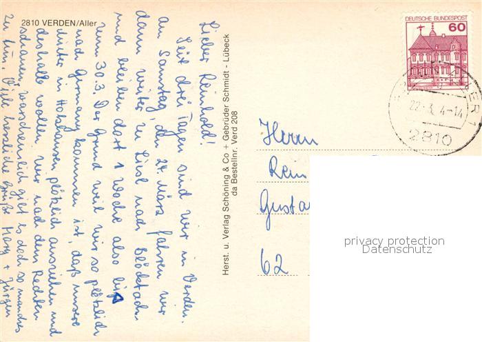 73176289 alte Postkarte Verden Aller Ortsansichten postalisch gelaufen Erhaltung siehe scans [PaolaD17] KatCode: 11110003361012