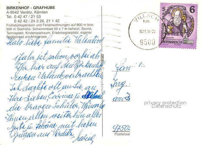 73198112 alte Postkarte Verditz Afritz Fruehstuecks Pension Birkenhof Schwimmbad Ferienwohnungen Grafhube postalisch gelaufen Erhaltung siehe scans [KathaD81] KatCode: 11390211020701