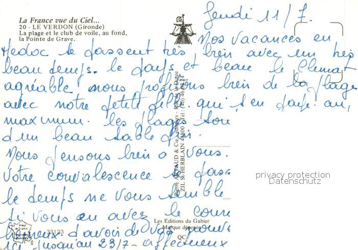 13521934 Verdon-sur-Mer Le Fliegeraufnahme Plage club de voile Pointe de Grave postalisch nicht gelaufen Erhaltung siehe scans [KathaD81] KatCode: 11170033433544