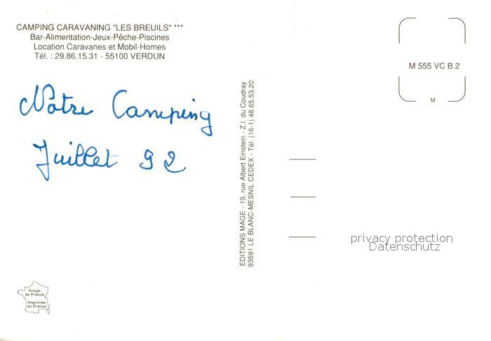 VERDUN Meuse Camping Caravaning Les Breuils Bar Alimentation Jeux Pêche Piscines postalisch nicht gelaufen Erhaltung siehe scans [FriedD77]