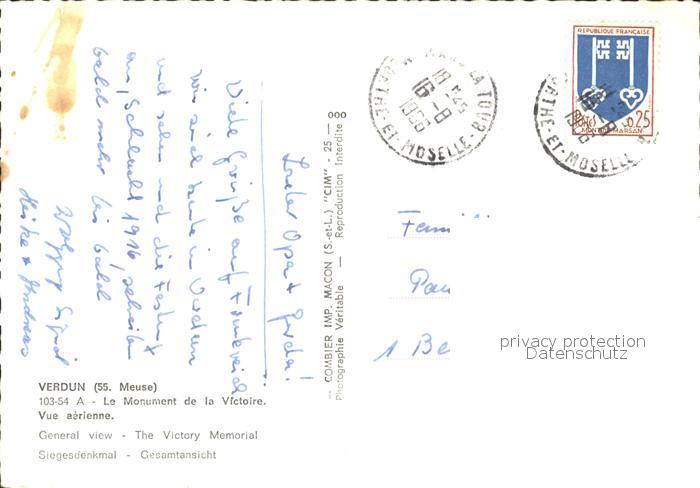 12251431 carte postale Verdun Meuse Fliegeraufnahme mit Siegessaeule postalisch gelaufen Erhaltung siehe scans KatCode: 11170055355545
