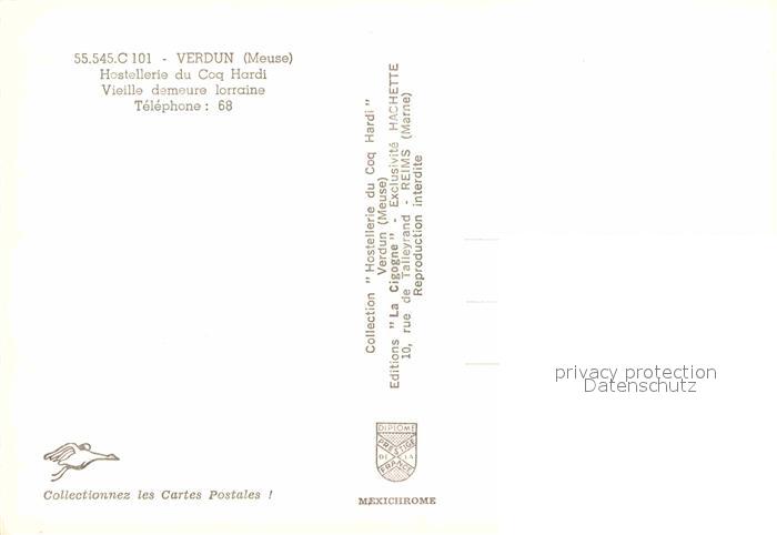 12820805 Verdun Meuse Hostellerie du Coq Hardi postalisch nicht gelaufen Erhaltung siehe scans [WerneD78] KatCode: 11170055355545