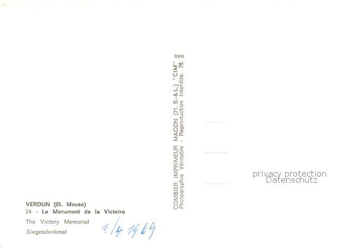 13217156 Verdun Meuse Monument de la Victoire Siegesdenkmal postalisch nicht gelaufen Erhaltung siehe scans [FriedD77] KatCode: 11170055355545