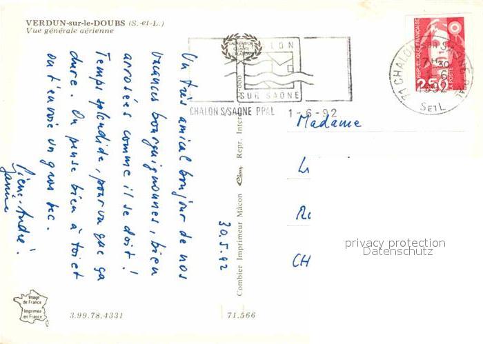 12864049 carte postale Verdun-sur-le-Doubs Fliegeraufnahme postalisch gelaufen Erhaltung siehe scans [WerneD78] KatCode: 11170071271566