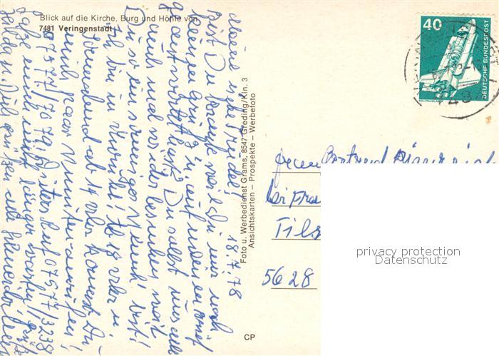 73647461 alte Postkarte Veringenstadt Panorama Blick auf Kirche Burg und Hoehle postalisch gelaufen Erhaltung siehe scans [FriedD77] KatCode: 11110008437114