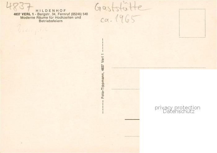 73858264 Verl Gaststaette Hildenhof Gastraum Festsaal postalisch nicht gelaufen Erhaltung siehe scans [FriedD77] KatCode: 11110005754044