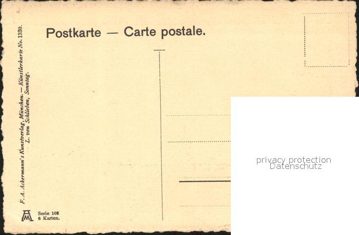 Verlag Ackermann Kuenstlerpostkarte Nr. 1330 L. von Schlieben Sonntag postalisch nicht gelaufen Erhaltung siehe scans