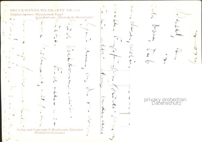 Verlag Bruckmann Nr. 210 Stephan Lochner Musizierende Engel Mandoline Harfe postalisch nicht gelaufen Erhaltung siehe scans