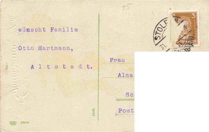74032493 Verlag EAS Nr. 1094 Neu Jahr Kind Schlitten Glückwunsch KatCode 22080000002200