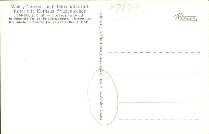 41400073 Verlag Franz Nr. Wald Nerven Höhenluftkurort Kurhaus Friedenweiler KatCode 11110008315113
