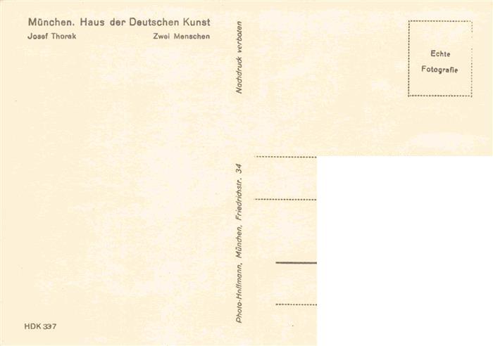 74034913 Verlag HDK Haus der Deutschen Kunst Nr. 337 Muenchen Josef Thorak Zwei Menchen postalisch nicht gelaufen Erhaltung siehe scans [IrynaD87] KatCode: 22080000002400