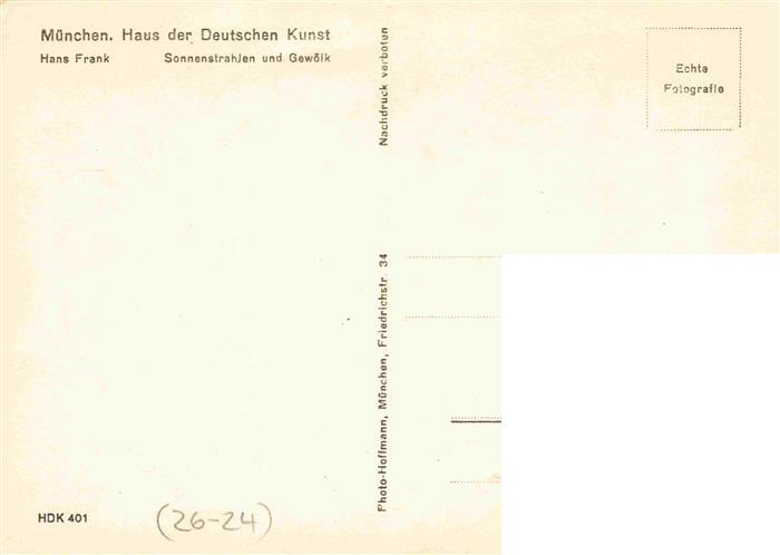 74027885 Verlag HDK Haus der Deutschen Kunst Nr. 401 Hans Frank Sonnenstrahlen und Gewoelk postalisch nicht gelaufen Erhaltung siehe scans [IrynaD87] KatCode: 22080000002400