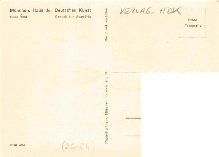 74034906 Verlag HDK Haus der Deutschen Kunst Nr. 434 Muenchen Hans Best Besuch von Auswaerts postalisch nicht gelaufen Erhaltung siehe scans [IrynaD87] KatCode: 22080000002400