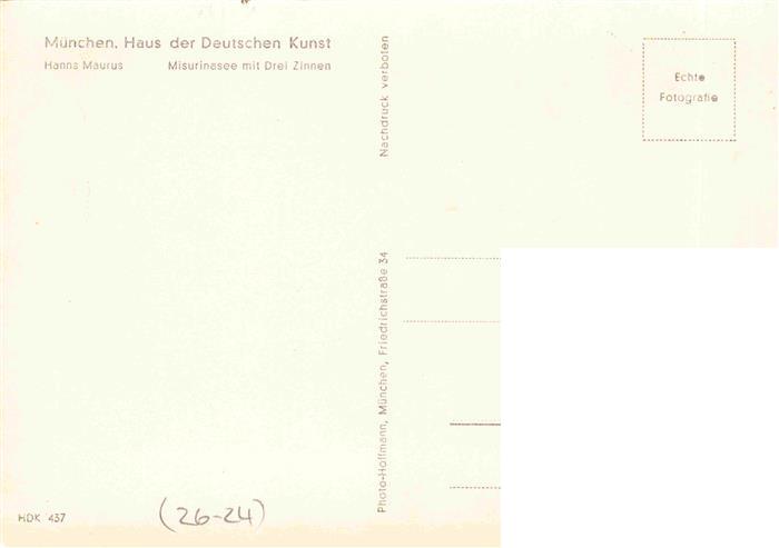 74027879 Verlag HDK Haus der Deutschen Kunst Nr. 437 Muenchen Hanns Maurus Misurinasee mit Drei Zinnen postalisch nicht gelaufen Erhaltung siehe scans [IrynaD87] KatCode: 22080000002400