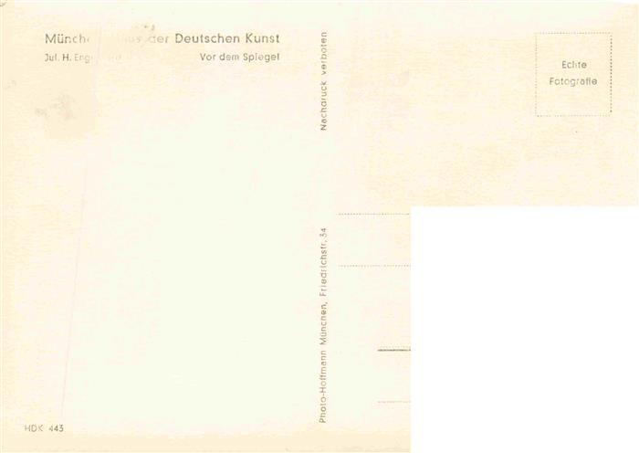 74034904 Verlag HDK Haus der Deutschen Kunst Nr. 443 Muenchen Jul.H. Engelhard Vor dem Spiegel postalisch nicht gelaufen Erhaltung siehe scans [IrynaD87] KatCode: 22080000002400