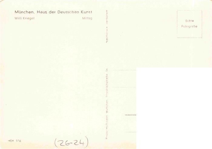 74027871 Verlag HDK Haus der Deutschen Kunst Nr. 516 Muenchen Willi Kriegel Mittag postalisch nicht gelaufen Erhaltung siehe scans [IrynaD87] KatCode: 22080000002400