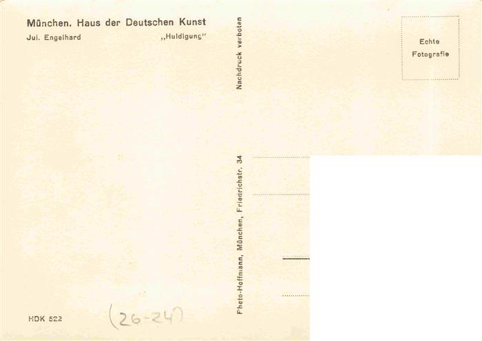 74027886 Verlag HDK Haus der Deutschen Kunst Nr. 522 Muenchen Jul. Engelhard Huldigung postalisch nicht gelaufen Erhaltung siehe scans [IrynaD87] KatCode: 22080000002400