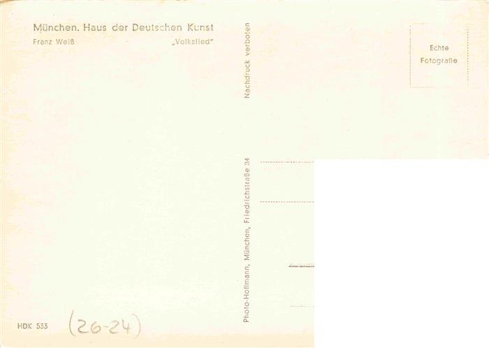 74027880 Verlag HDK Haus der Deutschen Kunst Nr. 533 Muenchen Franz Weiss Volkslied postalisch nicht gelaufen Erhaltung siehe scans [IrynaD87] KatCode: 22080000002400