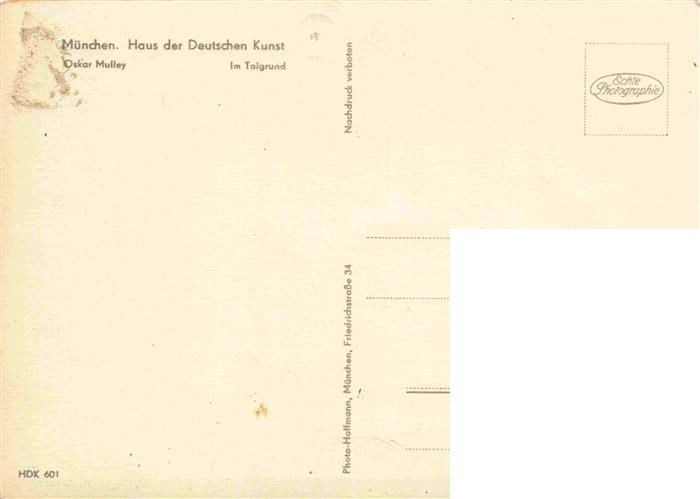 74034921 Verlag HDK Haus der Deutschen Kunst Nr. 601 Oskar Mulley Im Talgrund postalisch nicht gelaufen Erhaltung siehe scans [IrynaD87] KatCode: 22080000002400