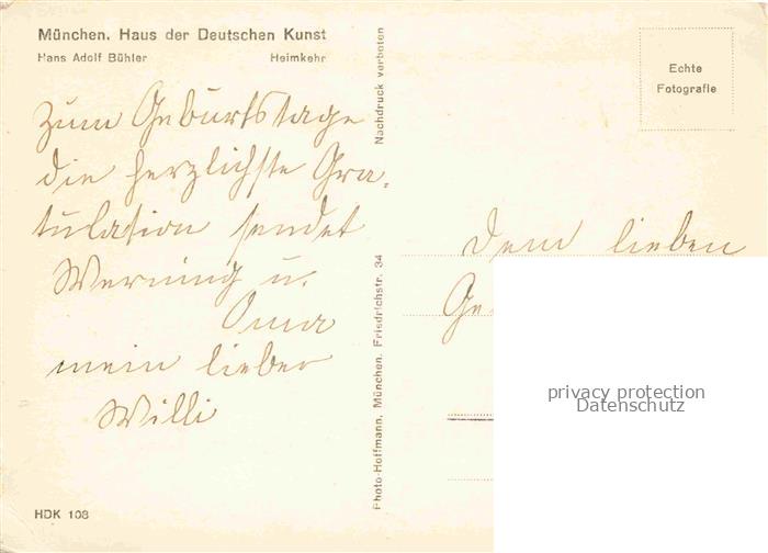 74031240 Verlag HDK Haus der Deutschen Kunst Nr. Hans Adolf Buehler Heimkehr postalisch nicht gelaufen Erhaltung siehe scans [IrynaD87] KatCode: 22080000002400