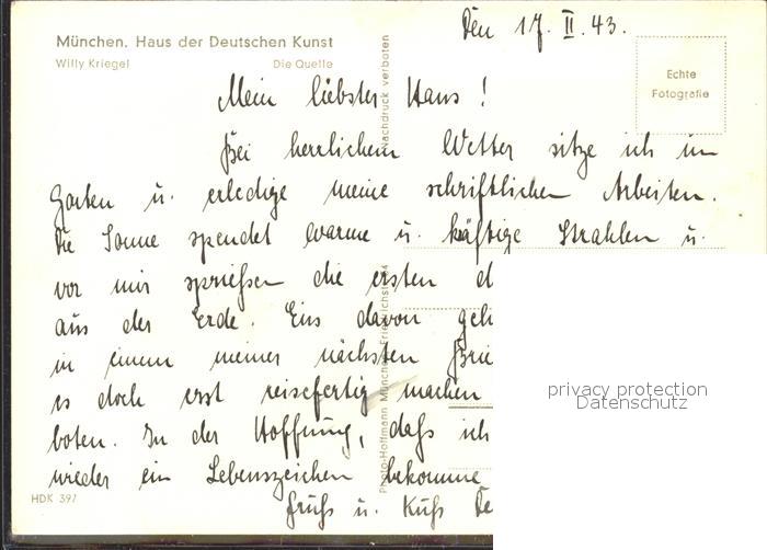 Verlag HDK Nr. 397 Willy Kriegel Die Quelle postalisch nicht gelaufen Erhaltung siehe scans