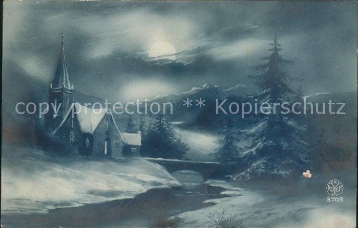 11789610 Verlag Noyer (AN Paris) Nr. 3703 Kirche Tannenbaum Mond KatCode 22080000002200