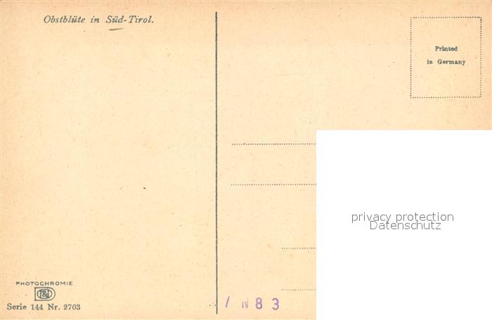 Verlag Photochromie Nr. 2703 Serie 144 Obstbl?te in S?dtirol postalisch nicht gelaufen Erhaltung siehe scans [PaolaD17]