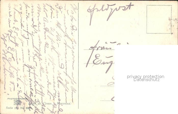 Verlag Photochromie Nr. 3337 Serie 196 Lago di Como Varenna postalisch nicht gelaufen Feldpost Erhaltung siehe scans