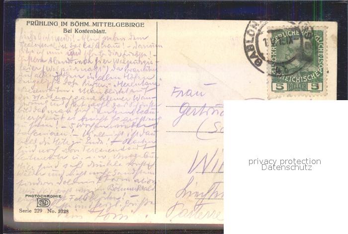 alte Postkarte Verlag Photochromie Nr. 3728 Serie 229 Fruehling Boehmen Kostenblatt postalisch gelaufen Erhaltung siehe scans