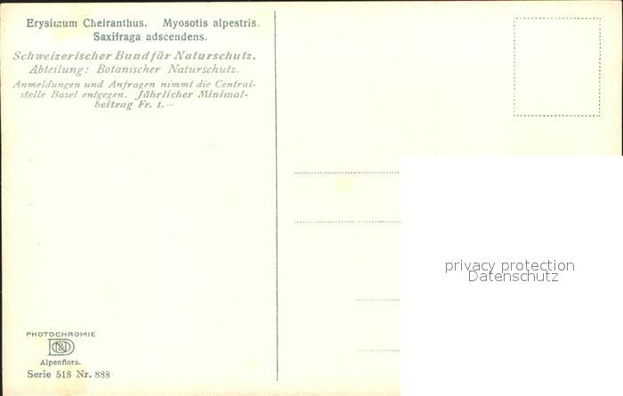11764822 Verlag Photochromie Nr. 888 Serie 518 Erysimum Cheiranthus Myosotis alpestris Saxifraga adscendens KatCode 22080000002200
