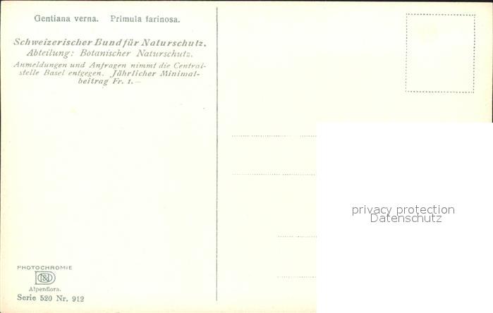 11764832 Verlag Photochromie Nr. 912 Serie 520 Gentiana verna Primula farinosa KatCode 22080000002200