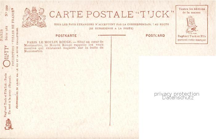 43261105 Verlag Tucks Oilette Nr. 100 Paris Moulin Rouge Montmatre N. Beraud KatCode 22080000002300