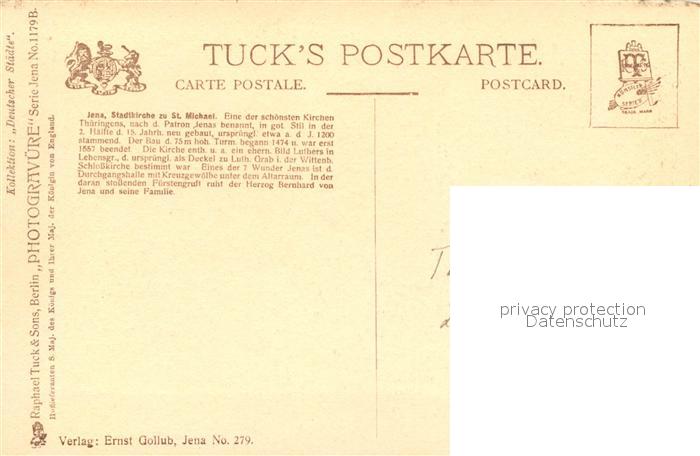 73501064 Verlag Tucks Oilette Nr. 1179 B Jena Stadtkirche zu St. Michael KatCode 22080000002300