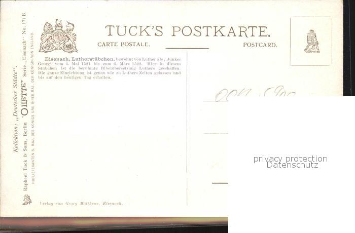 Verlag Tucks Oilette Nr. 171 B Eisenach Lutherstuebchen P. Thomas postalisch nicht gelaufen Erhaltung siehe scans
