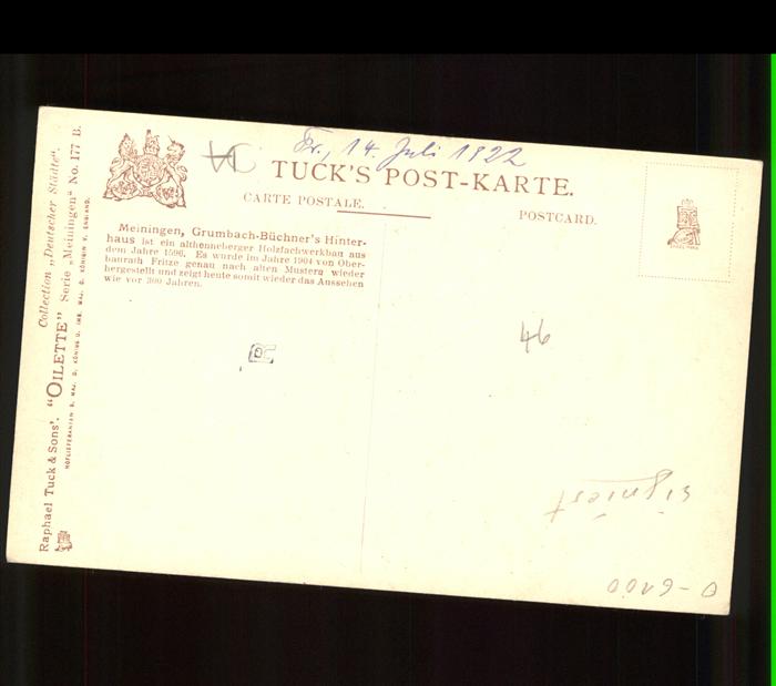 11448121 Verlag Tucks Oilette Nr. 177 B Meiningen Grumbach Büchners Hinterhaus KatCode 22080000002300