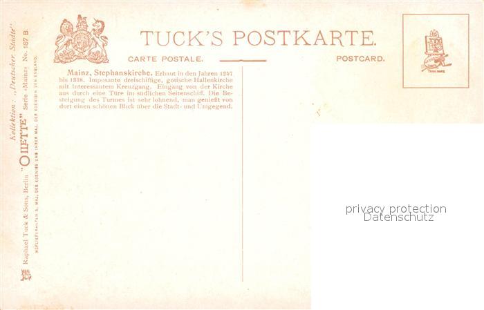 42925946 Verlag Tucks Oilette Nr. 187 B Mainz Stephanskirche Charles E. Flower KatCode 22080000002300