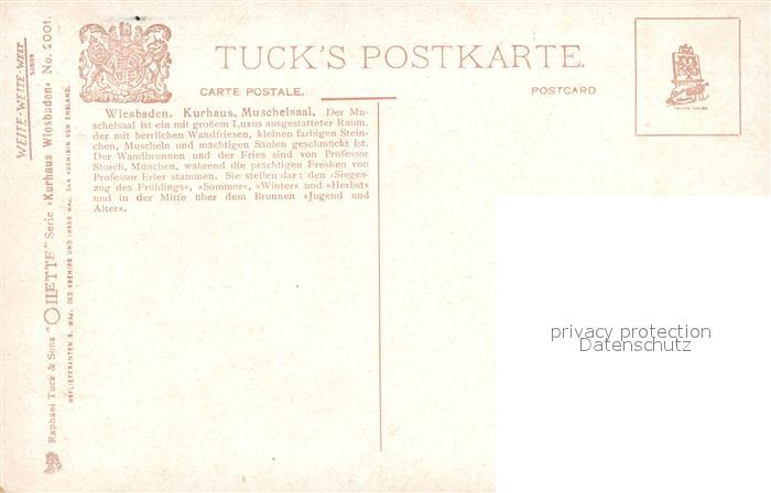 43261134 Verlag Tucks Oilette Nr. 2001 Wiesbaden Kurhaus Muschelsaal N. Beraud postalisch nicht gelaufen Erhaltung siehe scans [PaolaD17] Paol Katcode 22080000002300