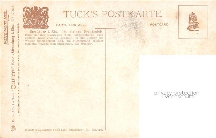 13567616 Verlag Tucks Oilette Nr. 2008 Strassburg Elsass N. Beraud postalisch nicht gelaufen Erhaltung siehe scans [PaolaD17] Paol Katcode 22080000002300