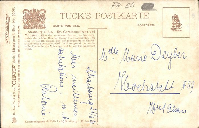 71470740 Verlag Tucks Oilette Nr. 2008 Straßburg Garnisonkirche Münster KatCode 22080000002300