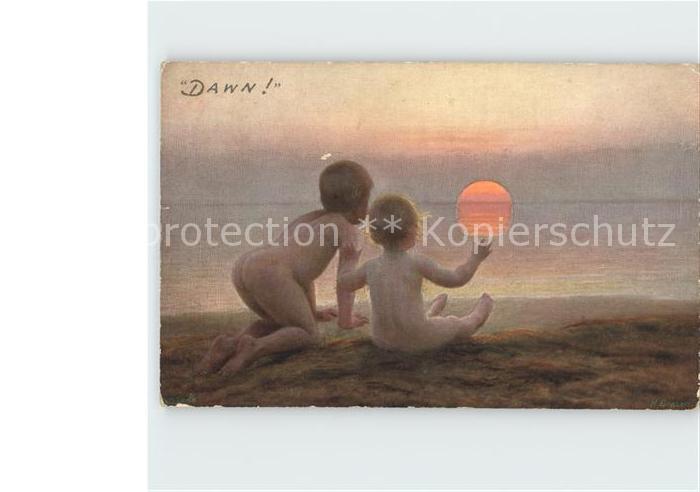 alte Postkarte Verlag Tucks Oilette Nr. 2941 Dawn Kinder Sonnenuntergang postalisch gelaufen Erhaltung siehe scans