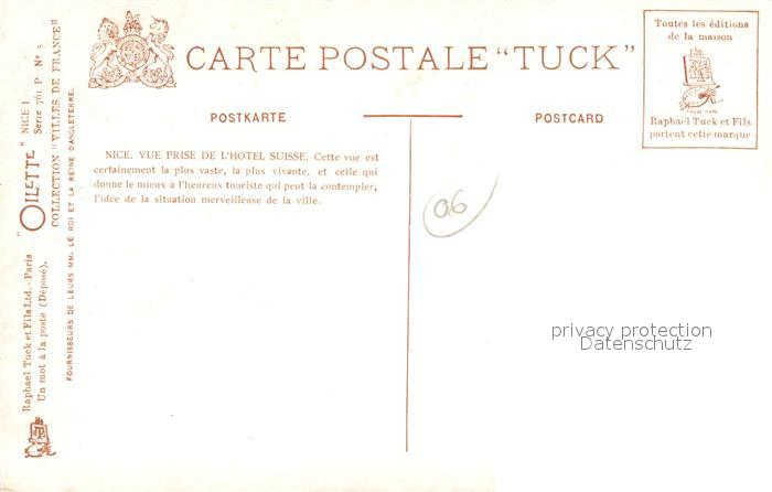 43134484 Verlag Tucks Oilette Nr. 5 Nice Vue Prise de l_Hotel Suisse KatCode 22080000002300