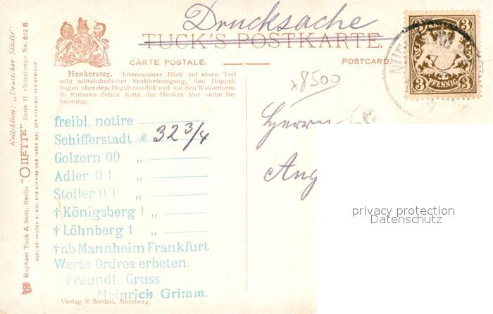 42930492 Verlag Tucks Oilette Nr. 612 B Nürnberg Henkersteg Charles E. Flower KatCode 22080000002300
