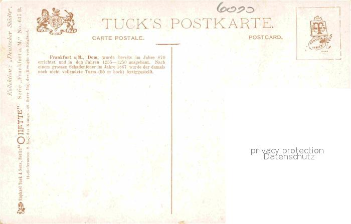 12640911 Verlag Tucks Oilette Nr. 617 B Frankfurt am Main Dom Charles E. Flower postalisch nicht gelaufen Erhaltung siehe scans [PaolaD17] Paol Katcode 22080000002300