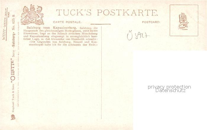 43283337 Verlag Tucks Oilette Nr. 625 B Salzburg vom Kapuzinerberg KatCode 22080000002300