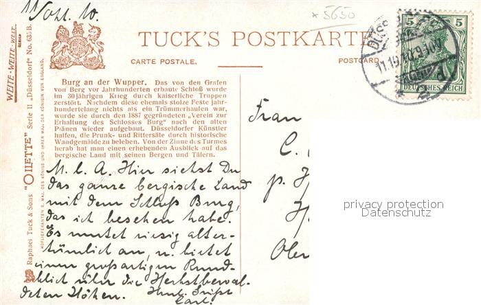 Verlag Tucks Oilette Nr. 635 B Burg an der Wupper Schloss Burg C