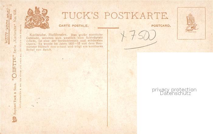 42926477 Verlag Tucks Oilette Nr. 638 Karlsruhe Hoftheater Charles E. Flower KatCode 22080000002300