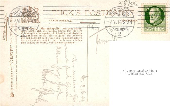 42932059 Verlag Tucks Oilette Nr. 640 Würzburg Marienkapelle Charles E. Flower KatCode 22080000002300